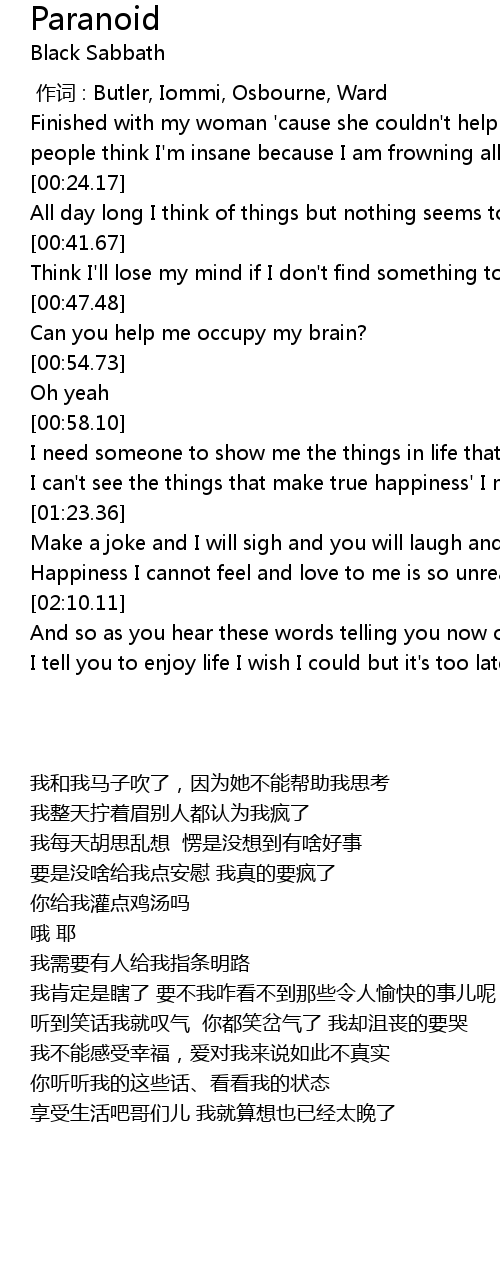 | [00:00.00] | 作词 : Butler, Iommi, Osbourne, Ward |
