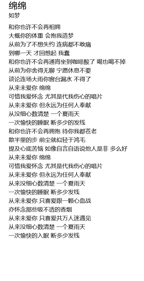 | [02:39.579] | 从来未爱你 绵绵 |