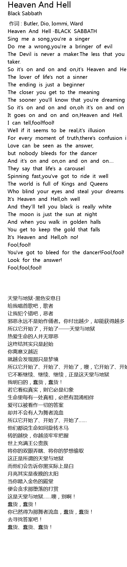 | [01:49.860] | It goes on and on and on,Heaven and Hell. |