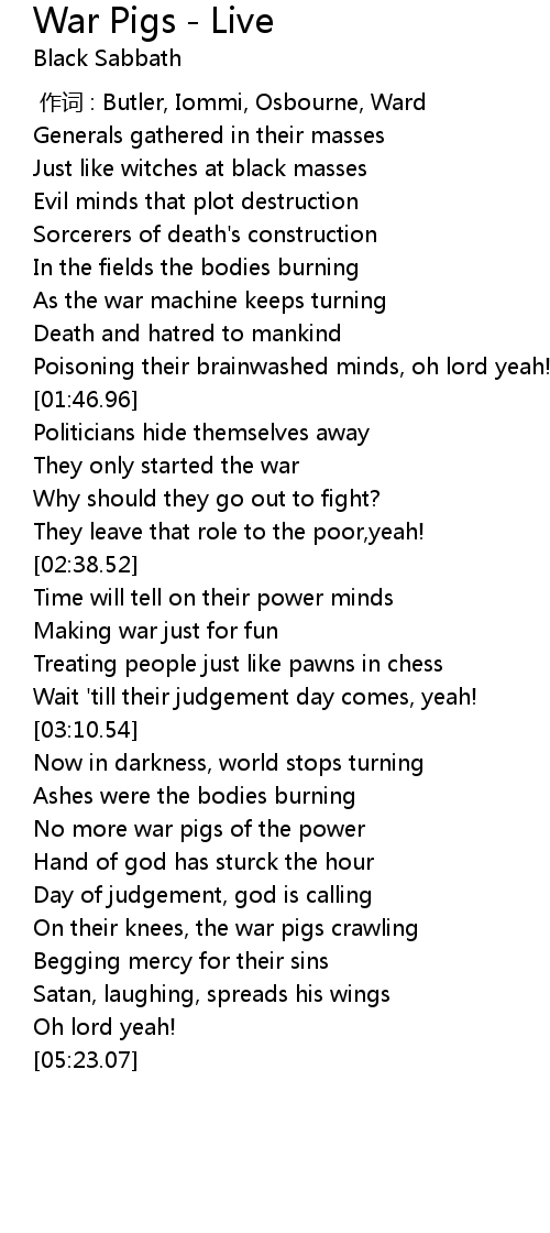 | [05:07.56] | On their knees, the war pigs crawling |