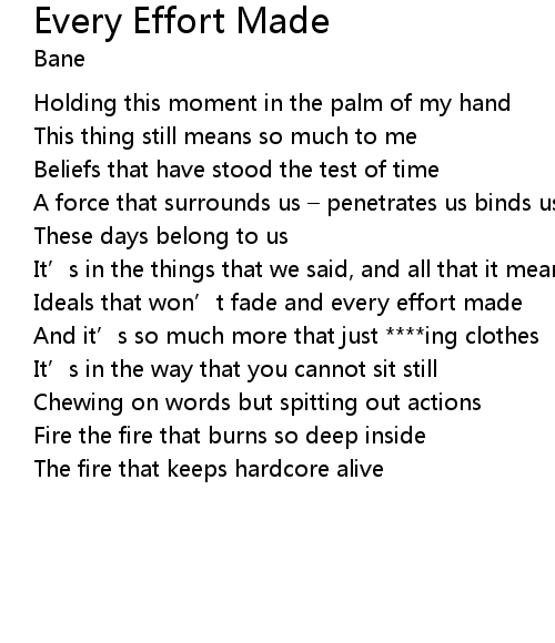 | Song | Every Effort Made |