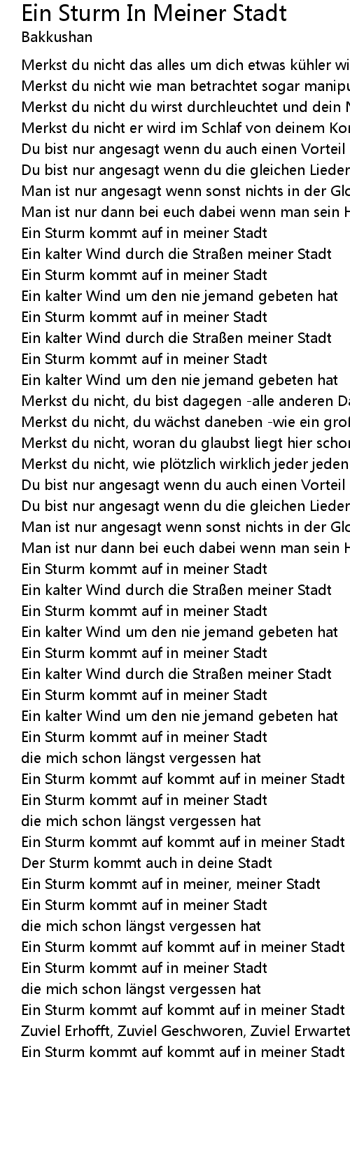 | Ein Sturm kommt auf in meiner, meiner Stadt | |