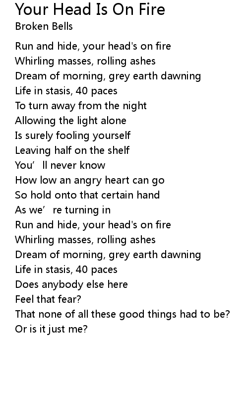| [00:19.64] | Run and hide, your head' s on fire |
