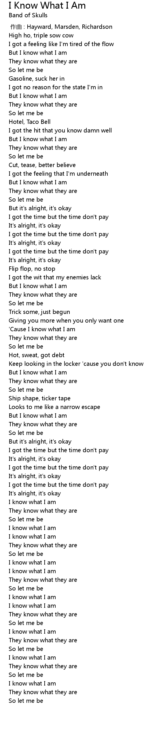 | [00:09.94] | But I know what I am |