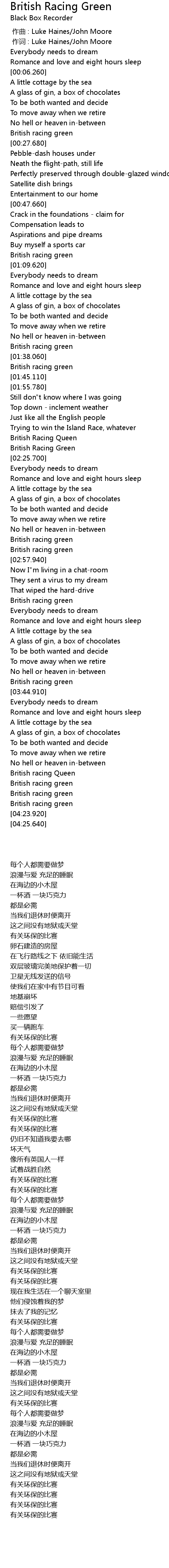 | [02:55.370] | British racing green |