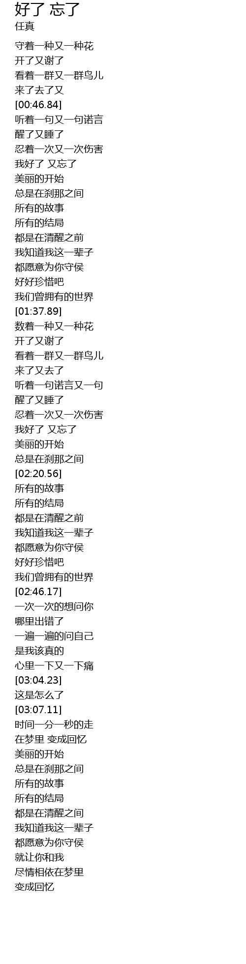 | [00:59.16] | 我好了 又忘了 |