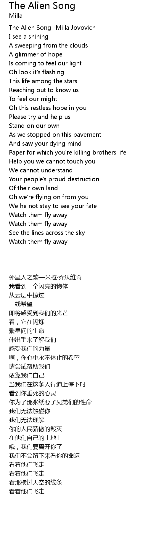 The Alien Song -Milla Jovovich |