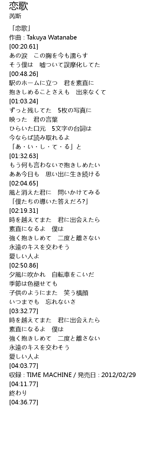 | [04:06.77] | 収録∶TIME MACHINE/発売日∶2012/02/29 |