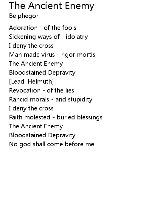 | Song | The Ancient Enemy |