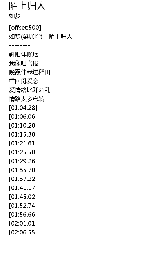 | [00:03.00] | 如梦(梁珈瑜) - 陌上归人 |