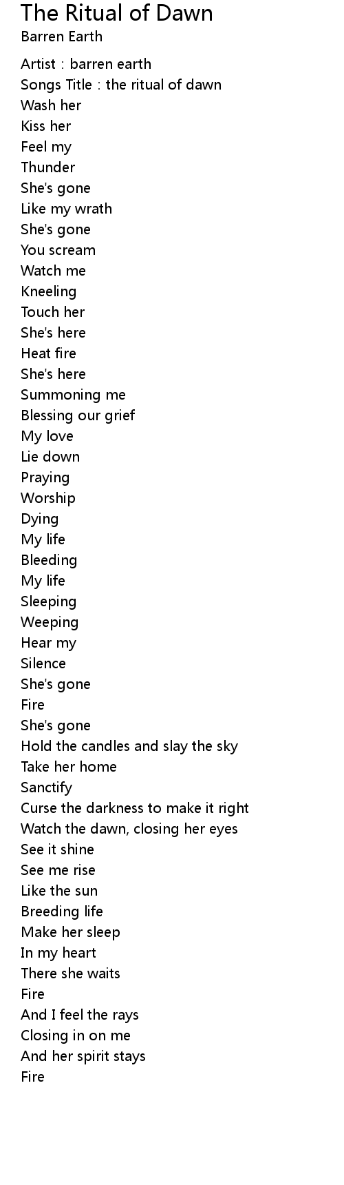 | Song | The Ritual of Dawn |
