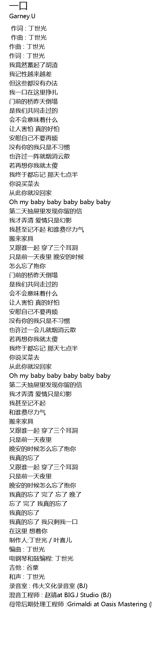 | [04:42.453] | 我真的忘了 我只剩我一口 |