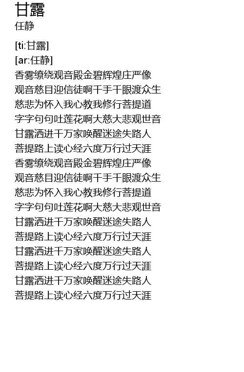 | [01:11.432] | 甘露洒进千万家唤醒迷途失路人 |