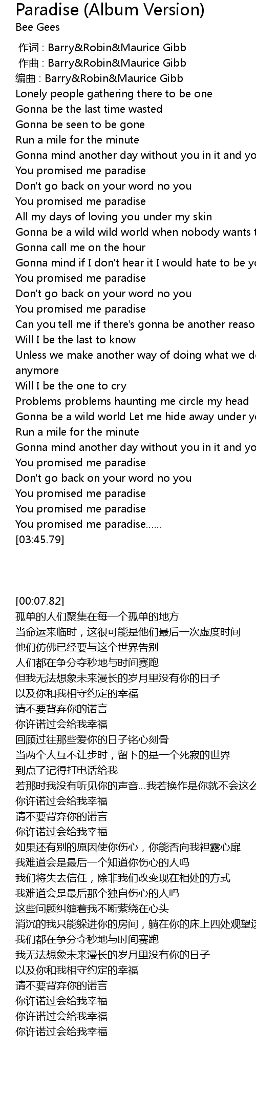 | [00:00.000] | 作词 : Barry&Robin&Maurice Gibb |