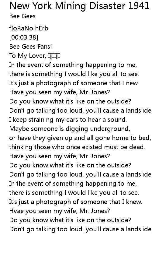 | [00:35.88] | Don't go talking too loud, you'll cause a landslide, Mr. Jones. |