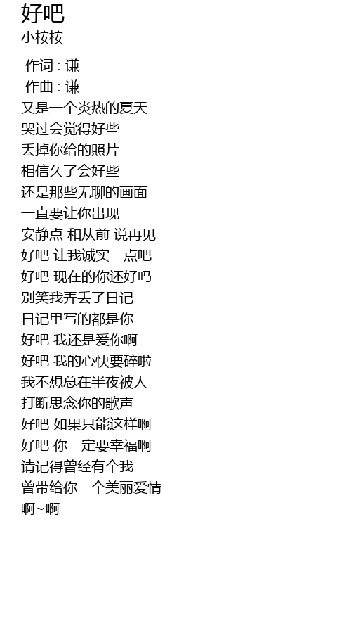 | [01:21.946] | hao ba wo de xin kuai yao sui la |