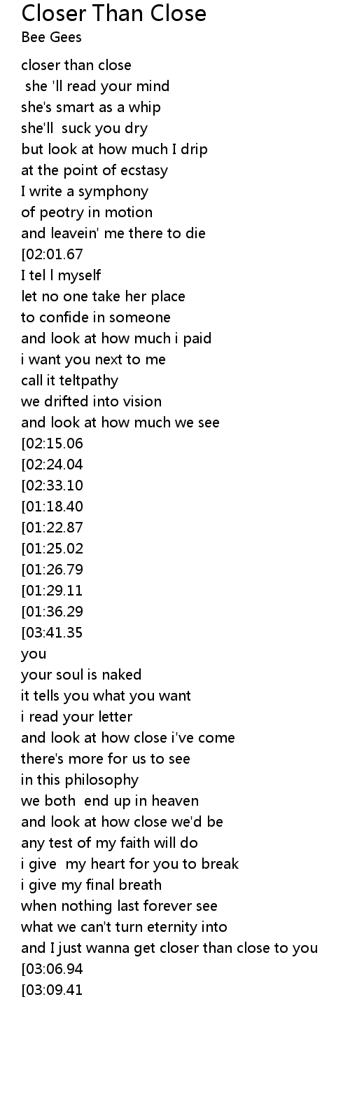 | [00:02.02] | closer than close |
