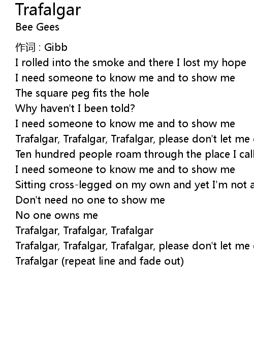 | Trafalgar, Trafalgar, Trafalgar, please don' t let me down | |