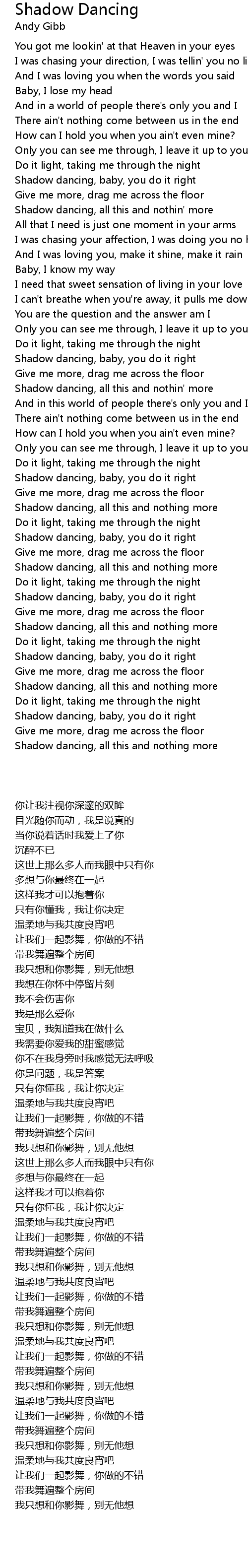 | [03:59.000] | Shadow dancing, baby, you do it right |