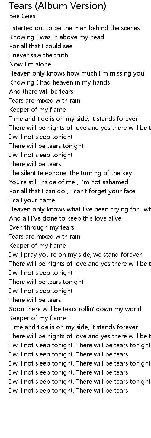 | [05:00.00] | I will not sleep tonight. There will be tears |