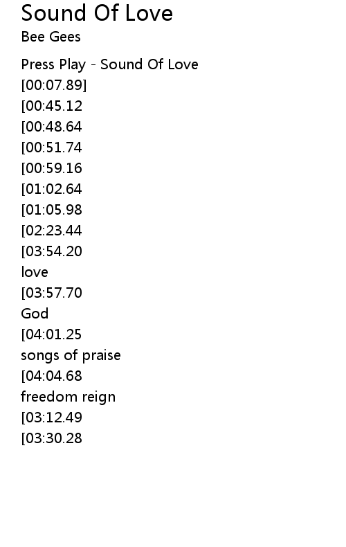 | [00:01.12] | Press Play - Sound Of Love |