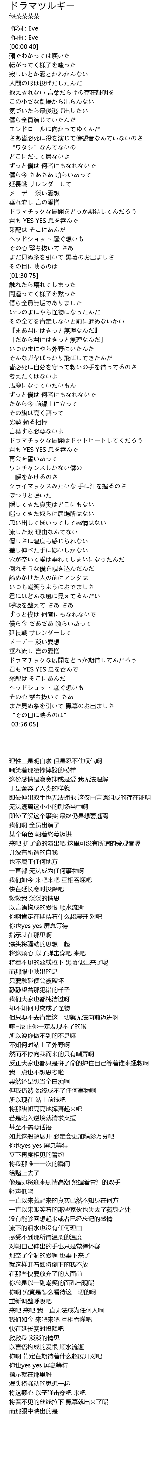 | [00:00.000] | 作词 : Eve |