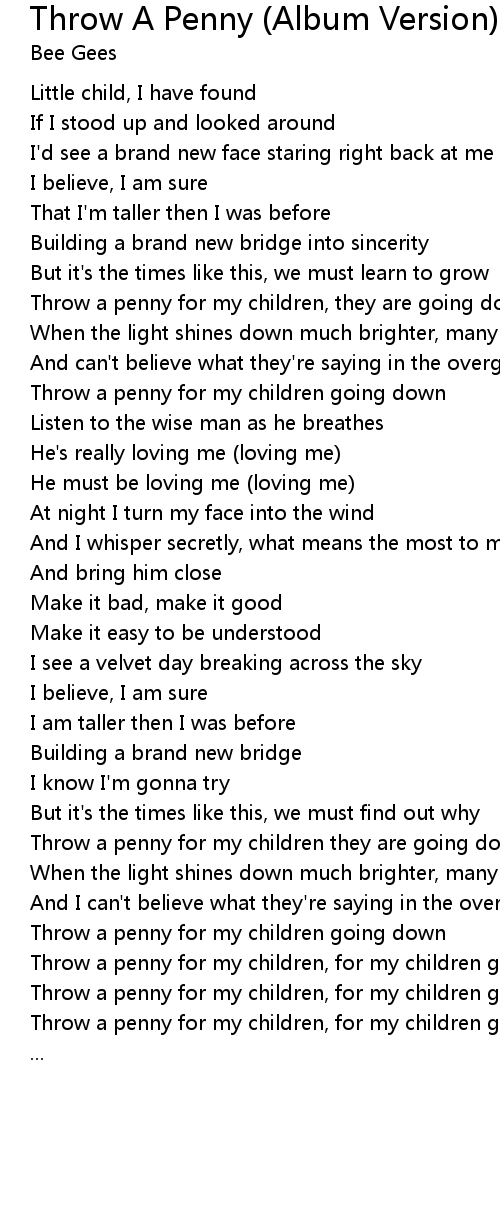 Throw a penny for my children going down |