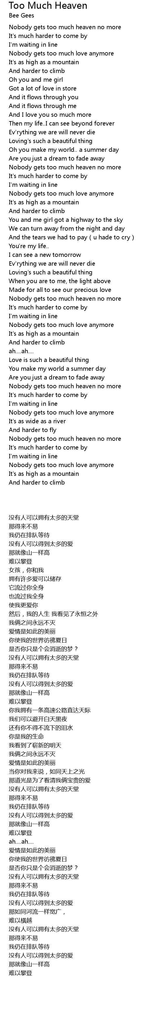 | Song | Too Much Heaven |