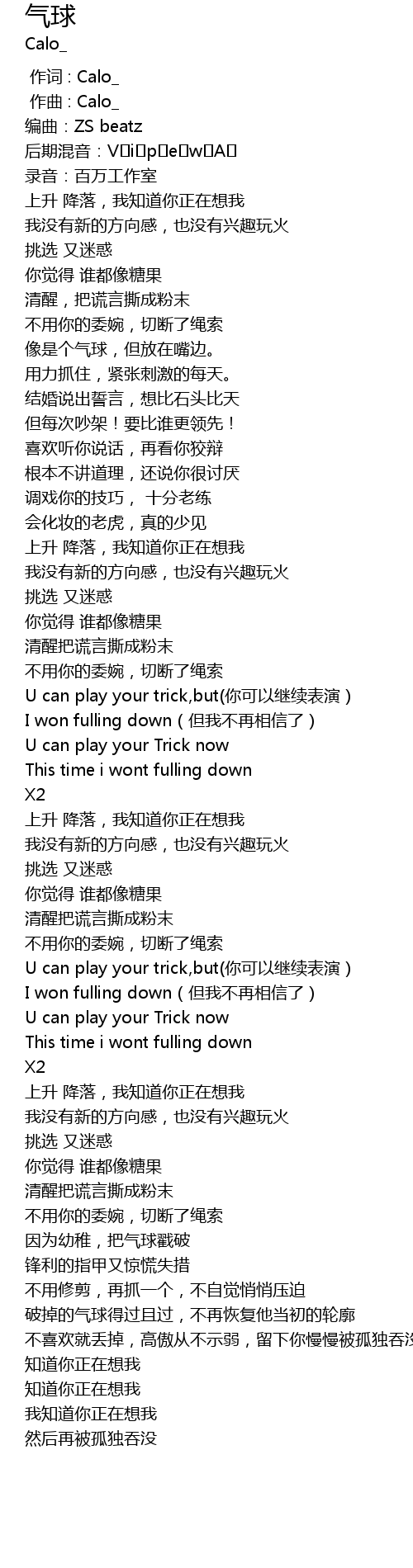 | [00:00.000] | 作词 : Calo_ |