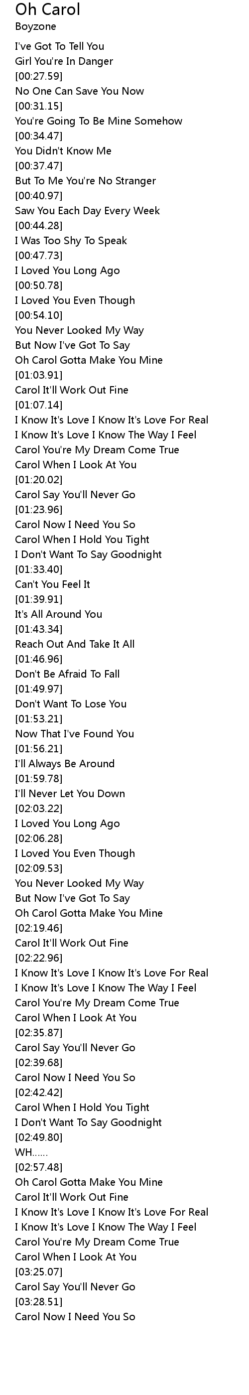 | [01:27.36] | Carol When I Hold You Tight |