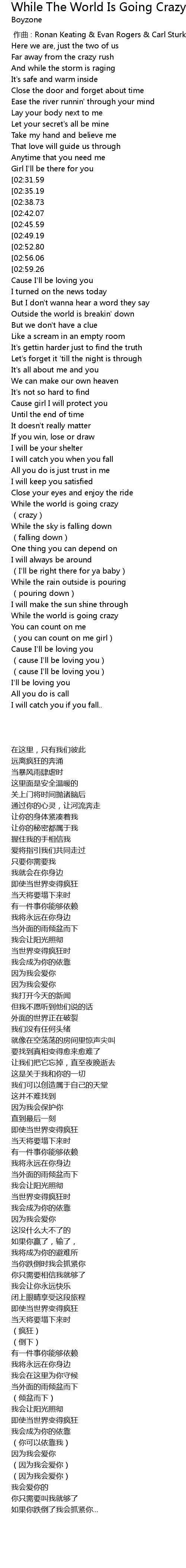 | [01:04.32][02:31.59] | While the world is going crazy |