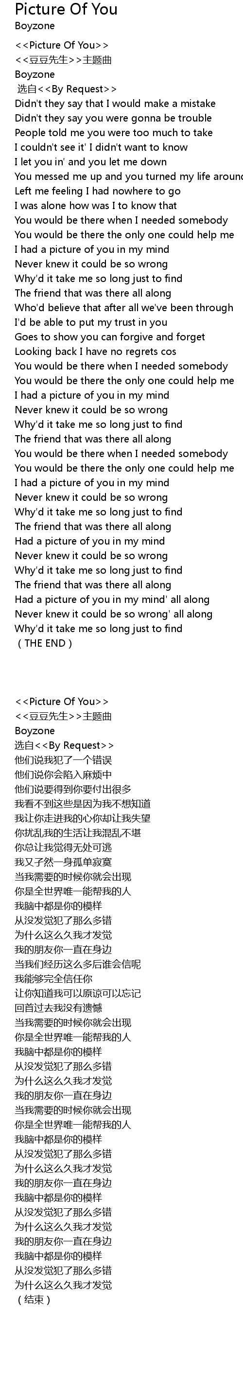 | [00:01] | <<Picture Of You>> |