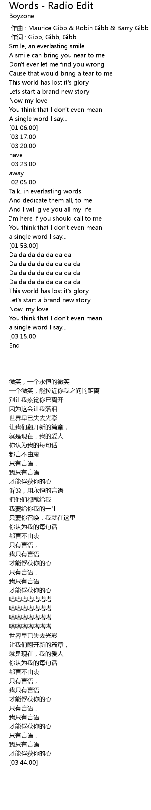 | [00:01.00] | 作词 : Gibb, Gibb, Gibb |