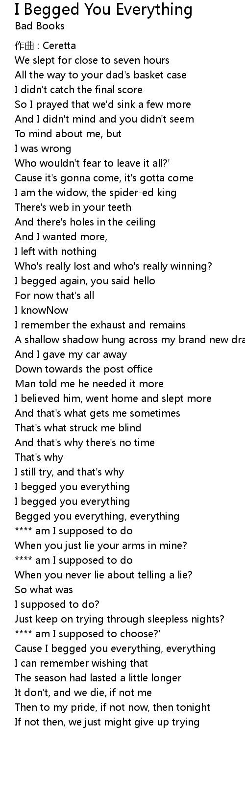 | Cause I begged you everything, everything | |