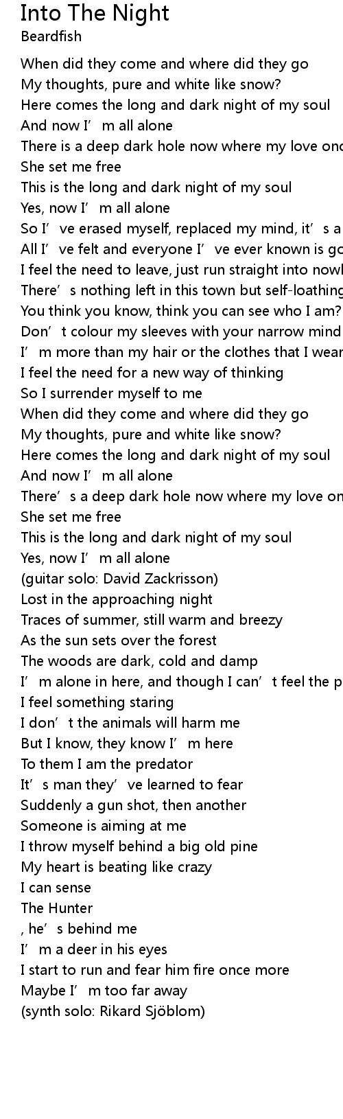 | Here comes the long and dark night of my soul | |