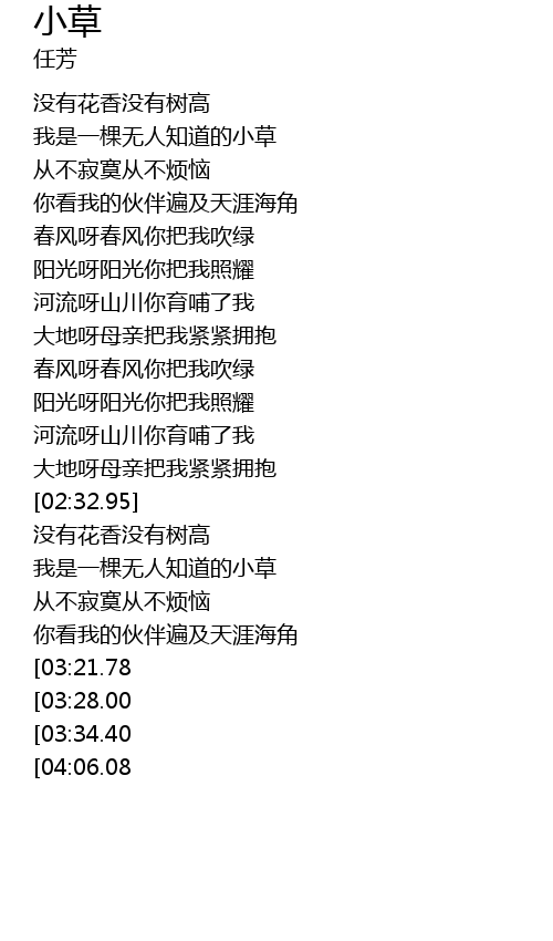 | [03:03.08] | 我是一棵无人知道的小草 |