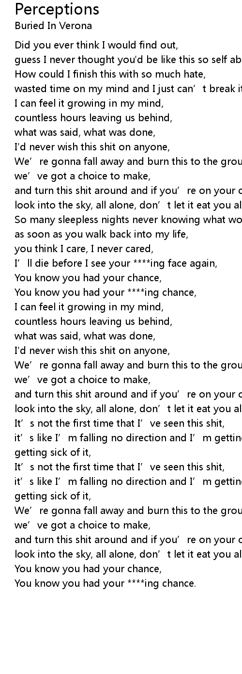 | it’s like I’m falling no direction and I’m getting sick of it, | |