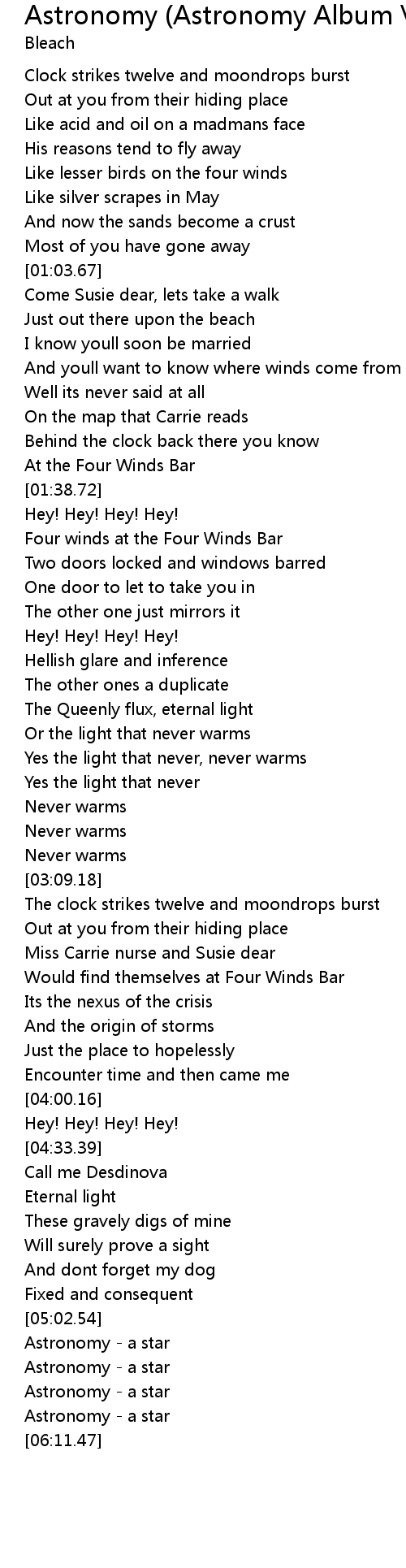 | [05:40.83] | Astronomy - a star |