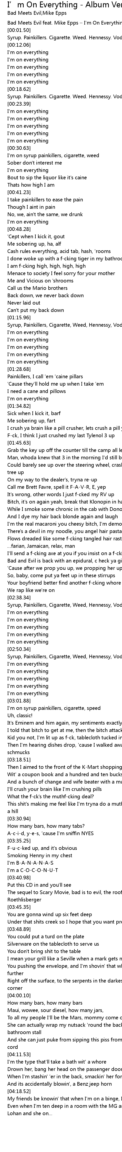 | [00:00.00] | Bad Meets Evil feat. Mike Epps I' m On Everything |