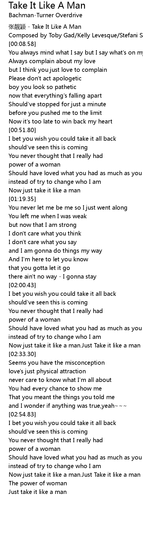 | [03:19.51] | Now just take it like a man. Just Take it like a man |