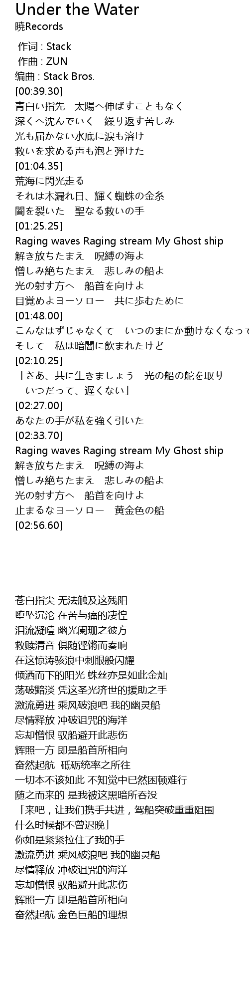 | [02:38.70] | Raging waves Raging stream My Ghost ship |