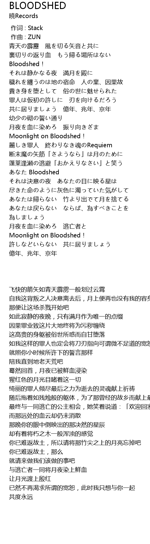 | [01:17.41] | 断末魔の矢筋「さようなら」は月のために |