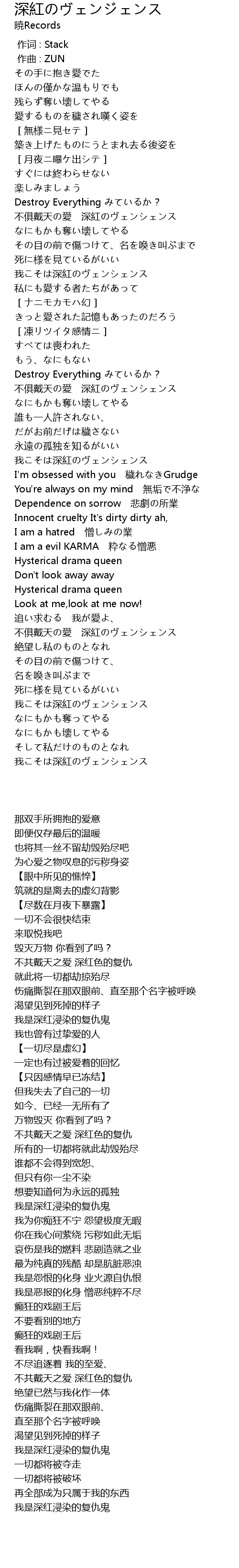 | [03:15.51] | I am a hatred 憎しみの業 |