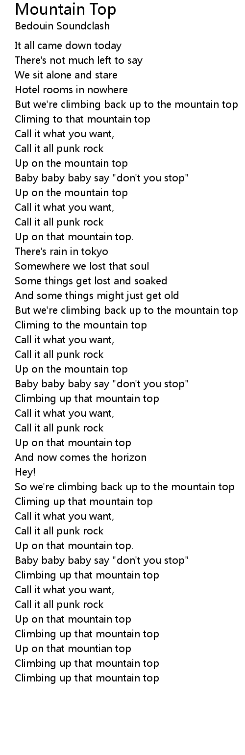 Climbing up that mountain top |