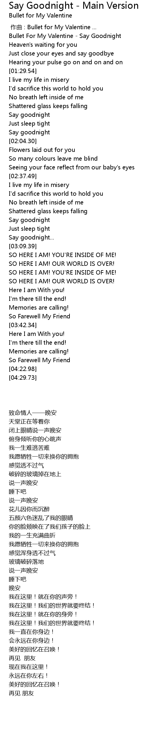| [00:01.72] | Bullet For My Valentine - Say Goodnight |