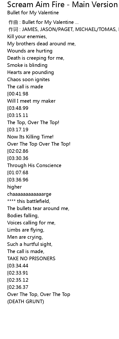 | [01:17.05][01:07.68] | As I SCREAM AIM AND FIRE! |