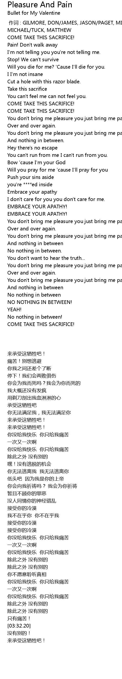 | [03:13.88] | You don't bring me pleasure you just bring me pain |