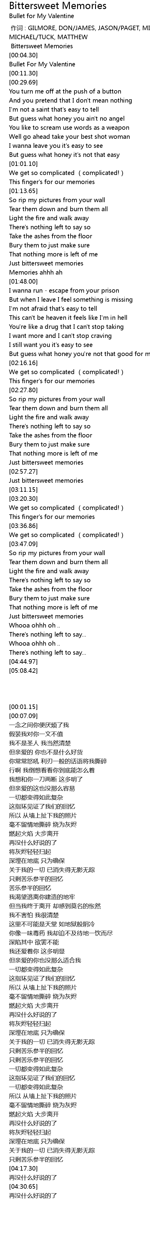 | [01:37.98] | Just bittersweet memories |