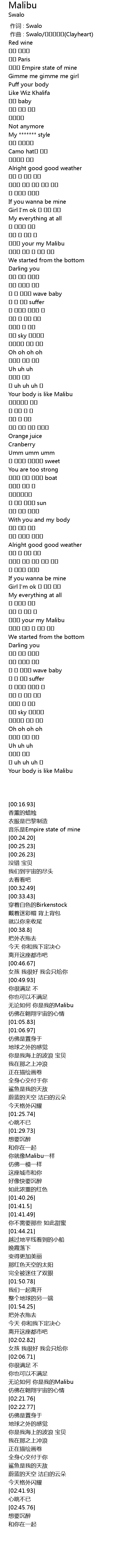 | [01:32.41] | Your body is like Malibu |