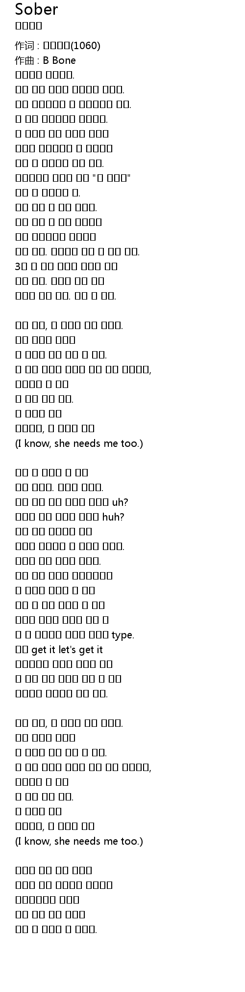 | 作词 : 일공육공(1060) | |